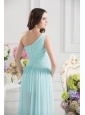 Aqua Blue One Shoulder Ruching Ankle-length Prom Dress