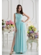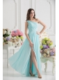 Home >  Prom Dresses >  Best Prom Dresses > Aqua Blue One Shoulder Ruching Ankle-length Prom Dress