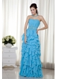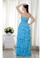 Aqua Blue  Prom Dress Empire Strapless Chiffon Beading