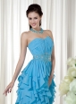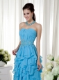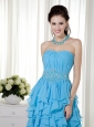 Aqua Blue Prom Dress Empire Strapless Chiffon Beading