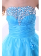 Aqua Blue Prom Dress with Strapless Beaded and Flowers