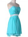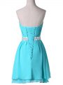 Home >  Special Occasion Dresses >  Homecoming Dresses > Aqua Blue Prom Homecoming Dress Prom and Party and Sweet 16 with Beading and Ruching Sweetheart Sleeveless Lace Up