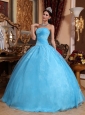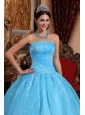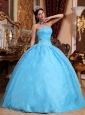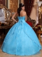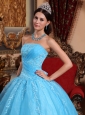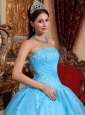 Home >  Quinceanera Dresses >  Discount Quinceanera Dresses > Aqua Blue Quinceanera Dress Strapless Organza Appliques Ball Gown