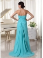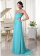 Home >  Prom Dresses >  Elegant Prom Dresses > Aqua Blue Ruch Sweetheart Beaded Prom Dress With Brush Train Chiffon