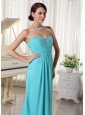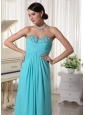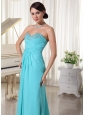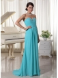 Aqua Blue Ruch Sweetheart Beaded Prom Dress With Brush Train Chiffon