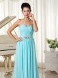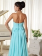 Aqua Blue Ruches Bodice Elegant Prom Dress Chiffon Brush Train For Custom Made