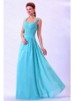 Aqua Blue Ruching Long Chiffon 2013 Dama Dresses