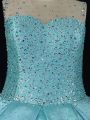 Aqua Blue Scoop Lace Up Beading Sweet 16 Quinceanera Dress Sleeveless