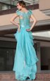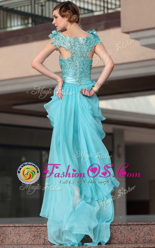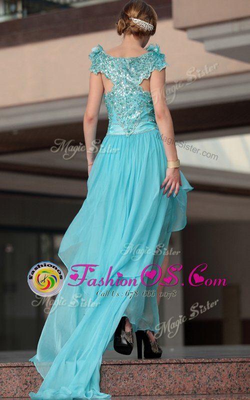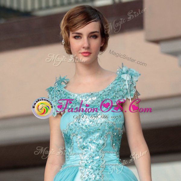 Home >  Special Occasion Dresses >  Cocktail Dresses > Aqua Blue Scoop Zipper Beading and Sequins Cocktail Dress Sleeveless