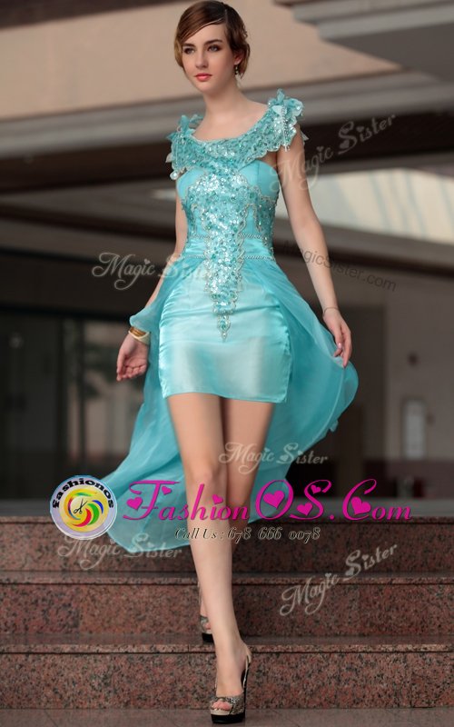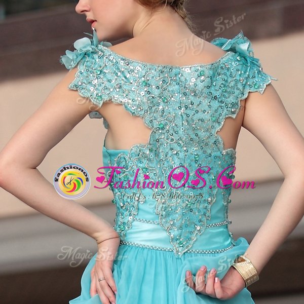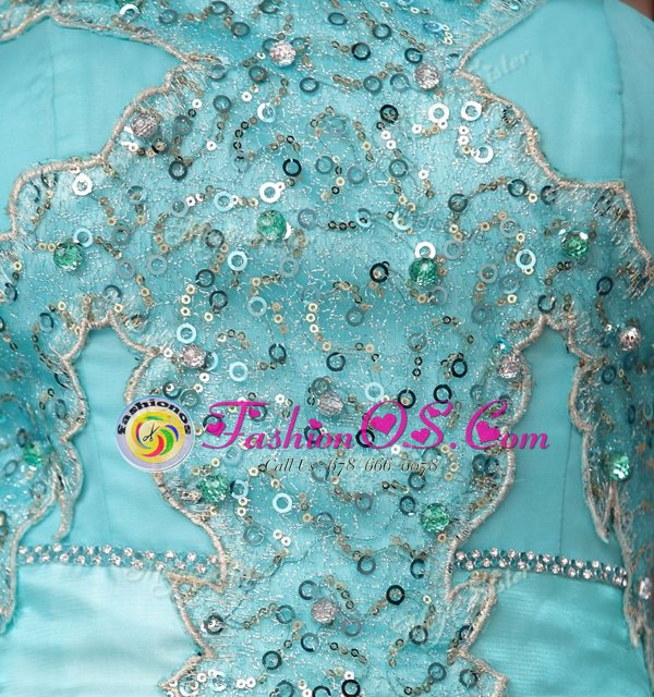 Aqua Blue Scoop Zipper Beading and Sequins Cocktail Dress Sleeveless