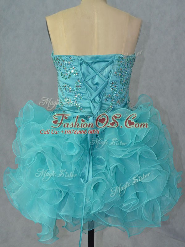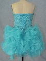 Aqua Blue Sleeveless Beading and Ruffles Mini Length Prom Dresses