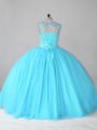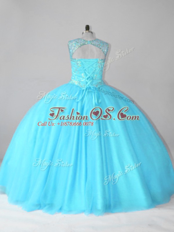 Aqua Blue Sleeveless Beading Floor Length 15th Birthday Dress