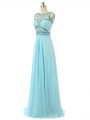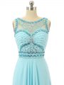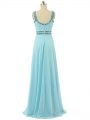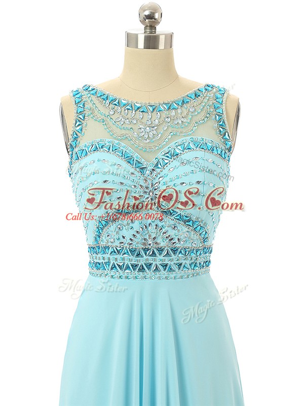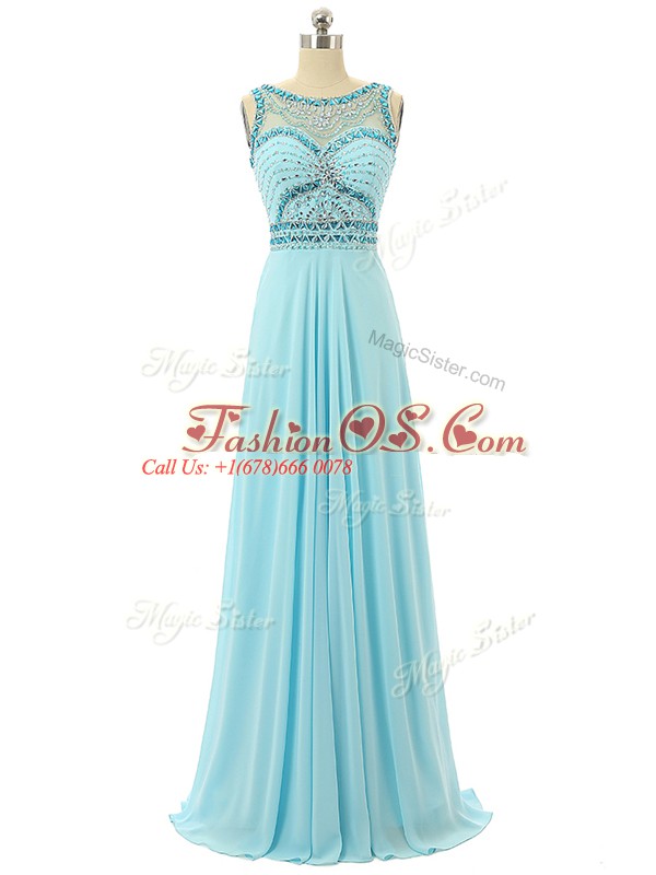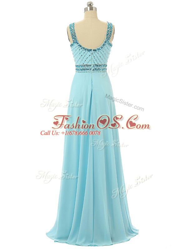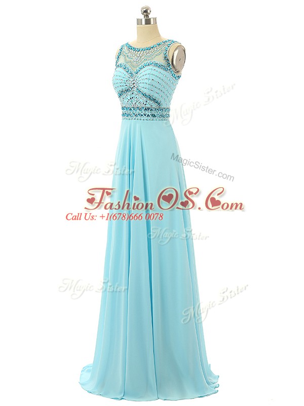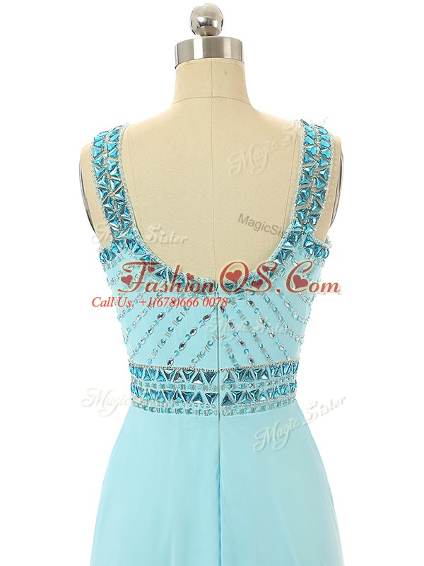Aqua Blue Sleeveless Beading Floor Length
