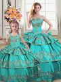 Aqua Blue Sleeveless Embroidery and Ruffled Layers Floor Length Quinceanera Gowns