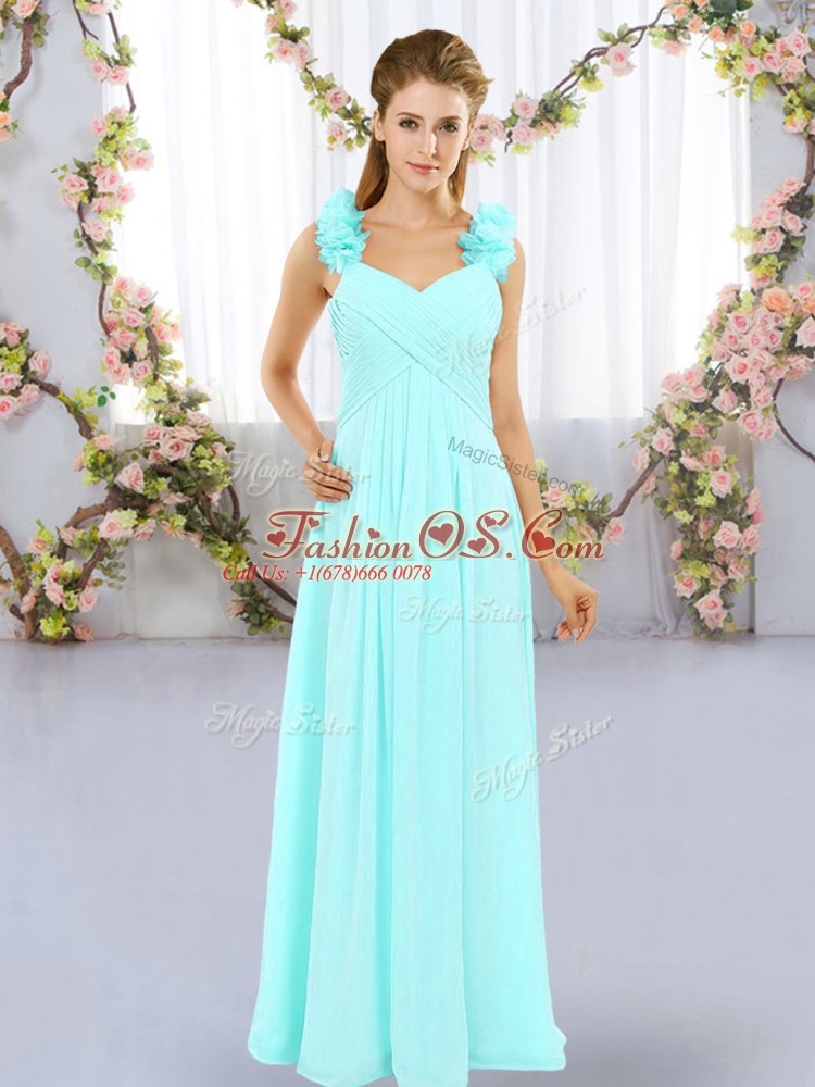 Aqua Blue Sleeveless Hand Made Flower Floor Length Court Dresses for Sweet 16