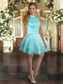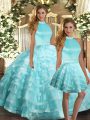 Aqua Blue Sleeveless Ruffled Layers Floor Length 15 Quinceanera Dress