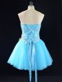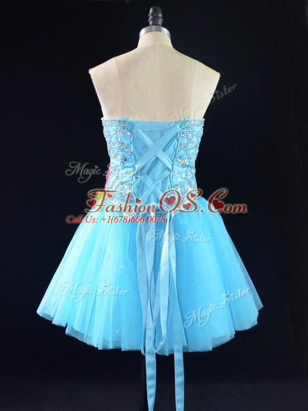 Aqua Blue Sleeveless Tulle Lace Up Prom Evening Gown for Prom and Party and Military Ball