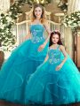 Aqua Blue Sleeveless Tulle Lace Up Vestidos de Quinceanera for Sweet 16 and Quinceanera