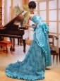 Home >  Special Occasion Dresses >  Celebrity Dresses > Aqua Blue Strapless Taffeta Court Train 2013 Prom Gowns Custom Made
