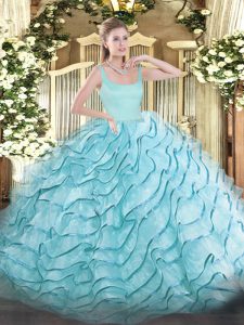 Home >  Quinceanera Dresses >  Luxurious Quinceanera Dresses > Aqua Blue Straps Neckline Ruffled Layers 15 Quinceanera Dress Sleeveless Zipper