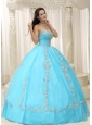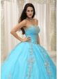 Aqua Blue Sweetheart Appliques and Beaded Decorate For 2013 Quinceanera Dress