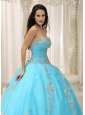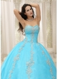 Home >  Quinceanera Dresses >  Perfect Quinceanera Dresses > Aqua Blue Sweetheart Appliques and Beaded Decorate For 2013 Quinceanera Dress