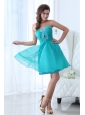 Aqua Blue Sweetheart Beaded Prom Dress with Knee-length
