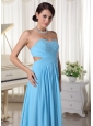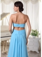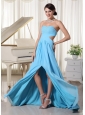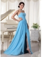 Aqua Blue Sweetheart High Slit Beaded Decorate Bust Prom Dress For Custom Made Chiffon Brush Train