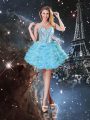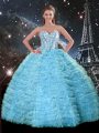 Aqua Blue Sweetheart Lace Up Beading and Ruffled Layers 15 Quinceanera Dress Sleeveless