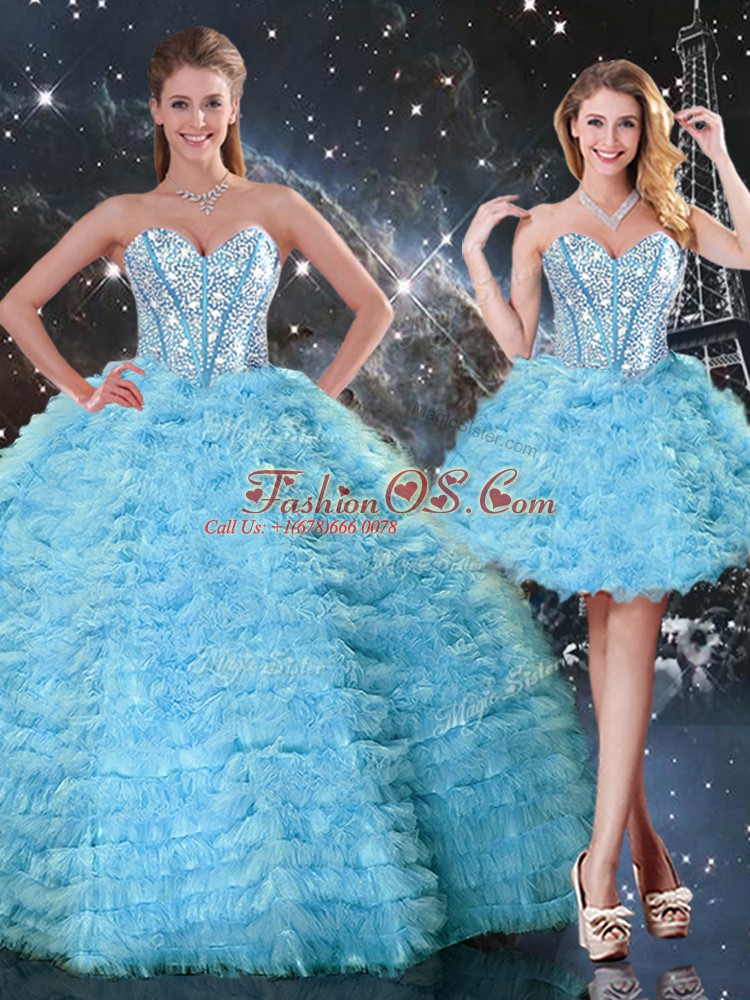 Home >  Quinceanera Dresses >  Detachable Quinceanera Skirts > Aqua Blue Sweetheart Lace Up Beading and Ruffled Layers 15 Quinceanera Dress Sleeveless