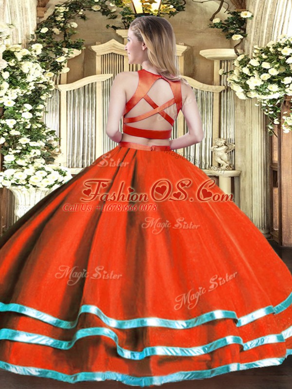 Aqua Blue Tulle Criss Cross Ball Gown Prom Dress Sleeveless Floor Length Ruching