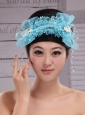 Aqua Blue Tulle Headpieces With Rhinestones and Imitation Pearls Decorate