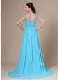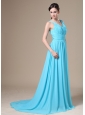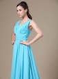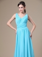 Aqua Blue V-neck and Ruched Bodice For Modest Bridesmaid Dress