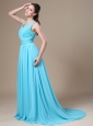 Home >  Bridesmaid Dresses >  Elegant Bridesmaid Dresses > Aqua Blue V-neck and Ruched Bodice For Modest Bridesmaid Dress