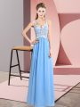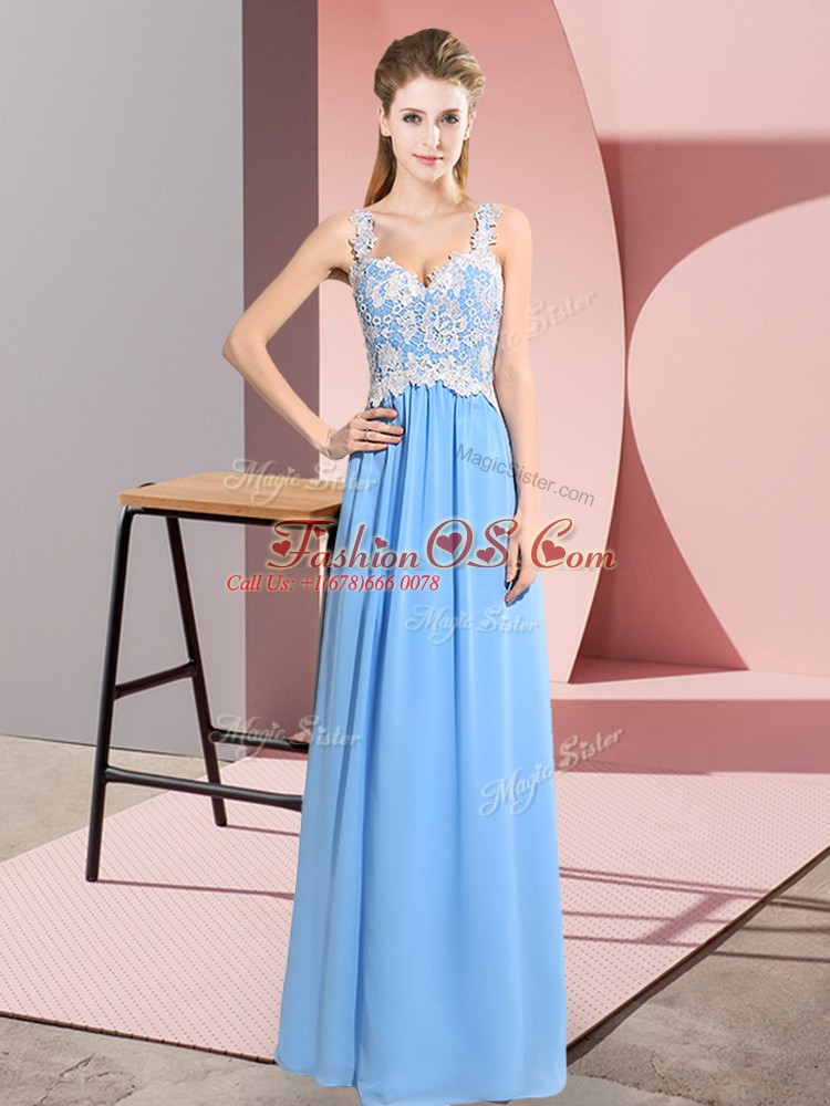 Aqua Blue Zipper V-neck Lace Homecoming Dress Chiffon Sleeveless