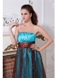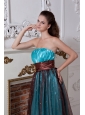 Home >  Prom Dresses >  Discount Prom Dresses > Aqua Column / Sheath Strapless Prom Dress Embroidery Floor-length Organza
