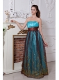 Aqua Column / Sheath Strapless Prom Dress Embroidery Floor-length Organza
