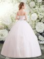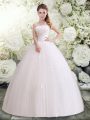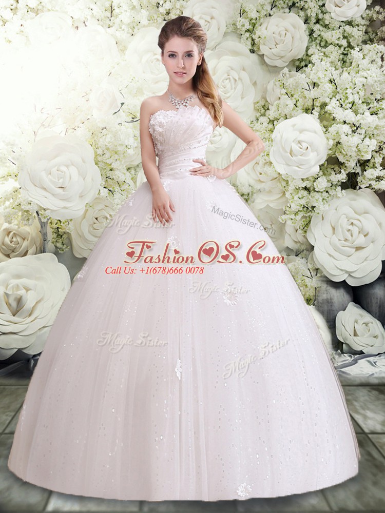 Artistic Ball Gowns Wedding Gowns White Strapless Tulle Sleeveless Floor Length Lace Up