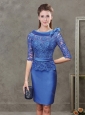 Artistic Bateau Mini Length Mother of the Bride Dress with Bowknot and Lace