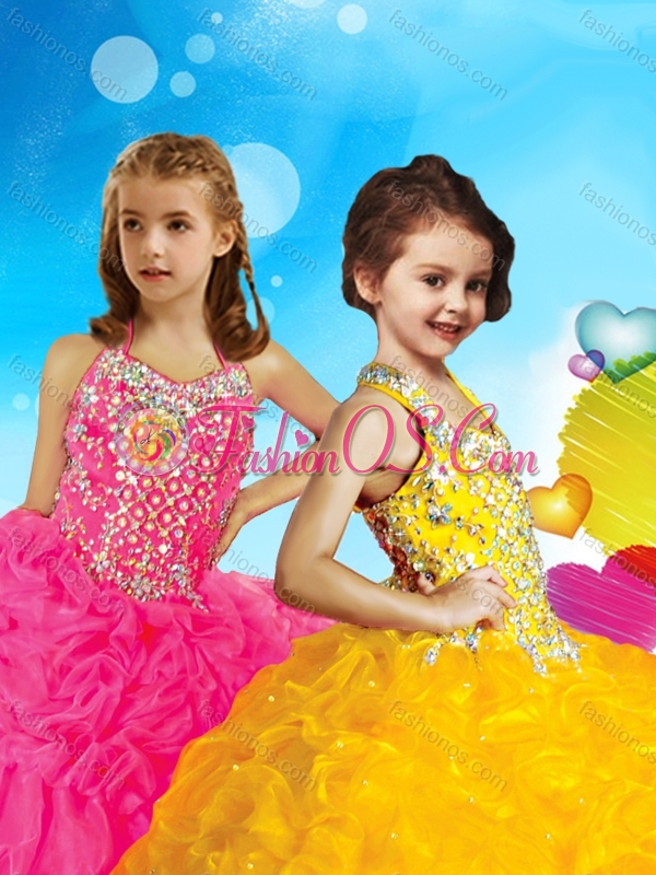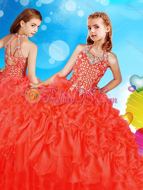 Home >  Special Occasion Dresses >  Mini Quinceanera Dresses > Artistic Beaded and Ruffled Little Girl Pageant Dress in Coral Red