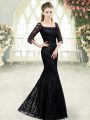 Home >  Prom Dresses >  Elegant Prom Dresses > Artistic Black Organza Lace Up Homecoming Dress Half Sleeves Sweep Train Beading and Lace
