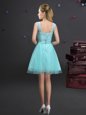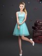 Home >  Bridesmaid Dresses >  Elegant Bridesmaid Dresses > Artistic Champagne A-line Scoop Sleeveless Tulle Mini Length Lace Up Lace and Appliques and Belt Bridesmaids Dress