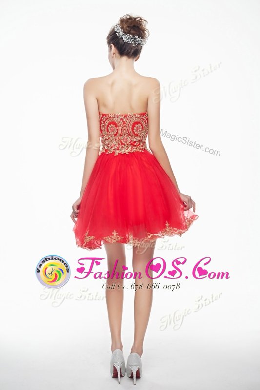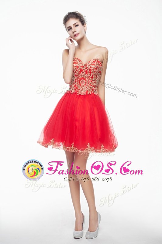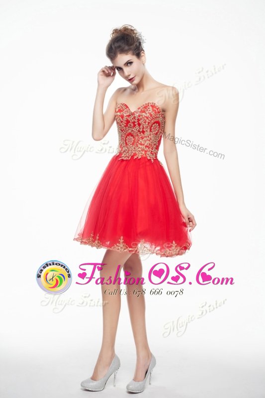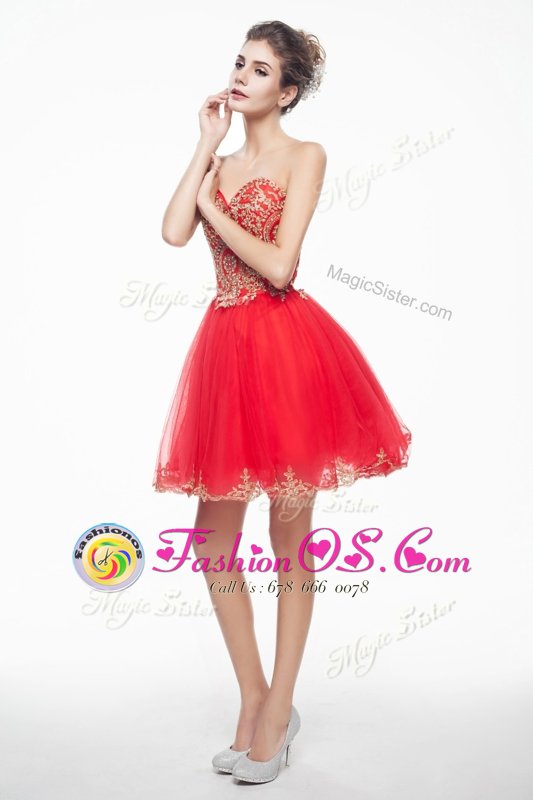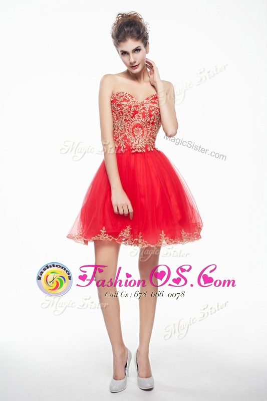 Artistic Coral Red Sweetheart Neckline Appliques and Ruffles Prom Dresses Sleeveless Side Zipper
