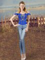 Home >  Quinceanera Dresses >  Detachable Quinceanera Skirts > Artistic Embroidery and Ruffled Layers Vestidos de Quinceanera Blue Lace Up Sleeveless Floor Length