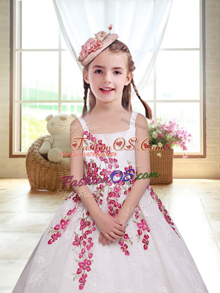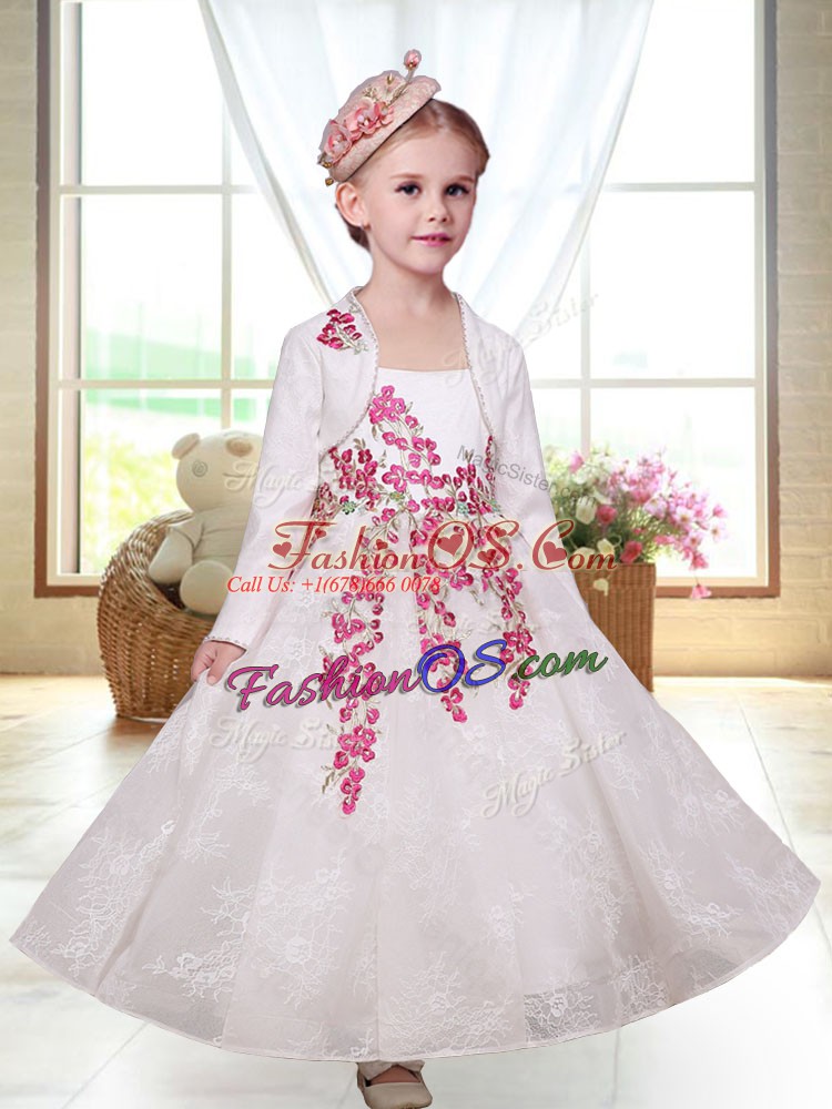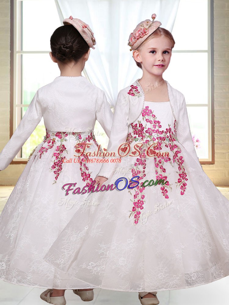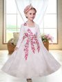 Artistic Embroidery Toddler Flower Girl Dress White Zipper Sleeveless Ankle Length