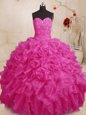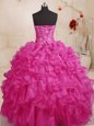 Home >  Quinceanera Dresses >  Luxurious Quinceanera Dresses > Artistic Floor Length Hot Pink Ball Gown Prom Dress Organza Sleeveless Beading and Ruffles