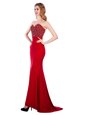 Home >  Prom Dresses >  Cheap Prom Dresses > Artistic Mermaid Elastic Woven Satin Sweetheart Sleeveless Sweep Train Zipper Beading Prom Gown in Wine Red