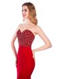 Artistic Mermaid Elastic Woven Satin Sweetheart Sleeveless Sweep Train Zipper Beading Prom Gown in Wine Red