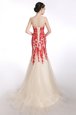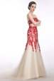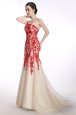 Home >  Prom Dresses >  Perfect Prom Dresses > Artistic Mermaid Strapless Sleeveless Prom Dresses Brush Train Appliques Red and Champagne Tulle