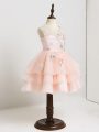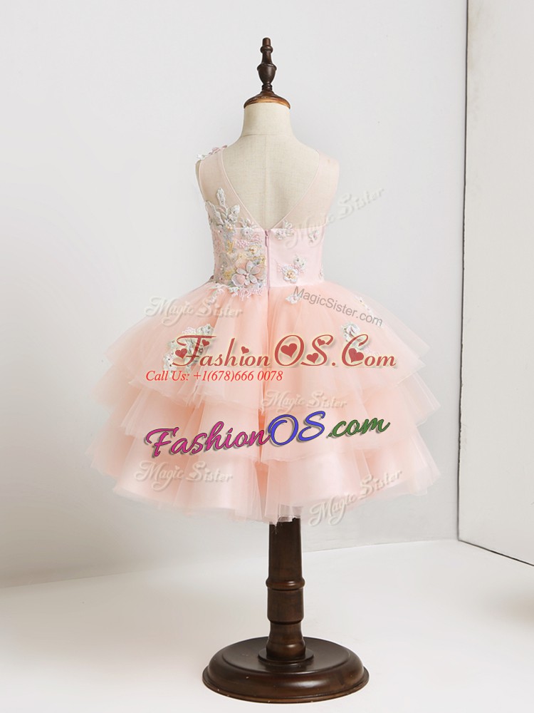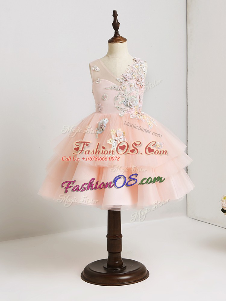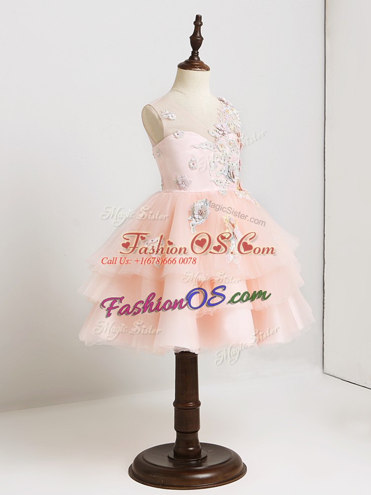 Home >  Special Occasion Dresses >  2019 flower Girl Dresses > Artistic Mini Length Pink Flower Girl Dresses for Less Tulle Sleeveless Appliques